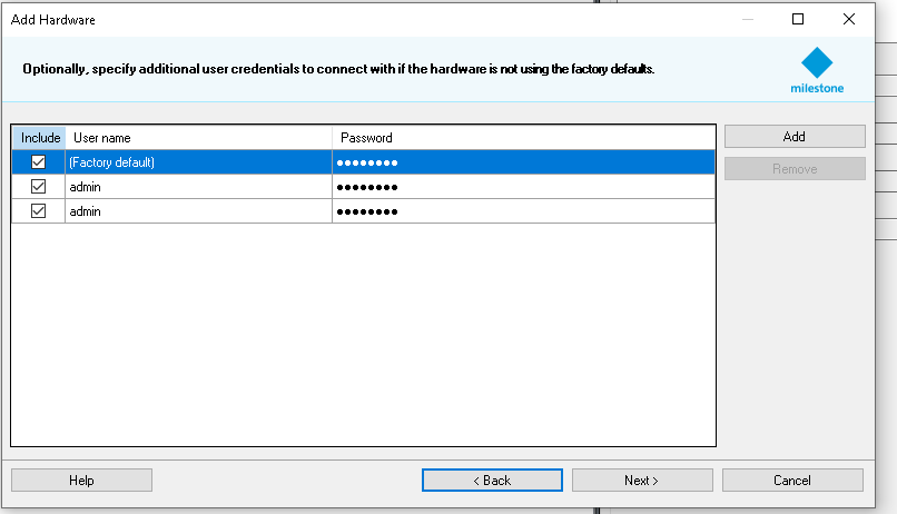 I've also tried using all 3 passwords, since milestone lets you add more than one username and password to the list then you can simply put a check in the options you want to use. I've also tried all the passwords with all the other camera and milestone combinations possible as described within this message. Back and forth I went between the camera and milestone for hours changing a thing in the caemra and trying all the different options in Milestone, then changing another thing, then trying all the different Milestone options again… on and on trying every possible combination. Then I began trying all the different combination possibilities between the camera and Milestone after changing device packs, for 5 different device packs. There is a good possibility that I may have missed one or several different camera/milestone/driver combinations. Which Is what brought me to this forum to ask for help. I know they work because they did work on my old milestone server which i should have just kept but figured I would build a new one with better hardware and newer version of Milestone.