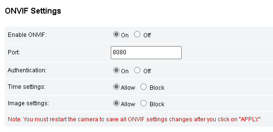 RTSP authentication enabled but ONVIF authentication disabled