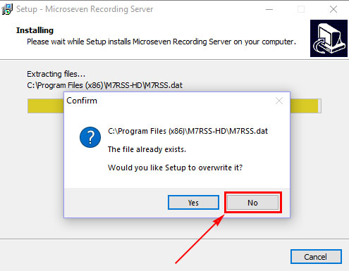 While you install the new version M7RSS, a popup window asks “Would you like Setup to overwrite it?”. You will click on “No” to keep the existed camera settings information.