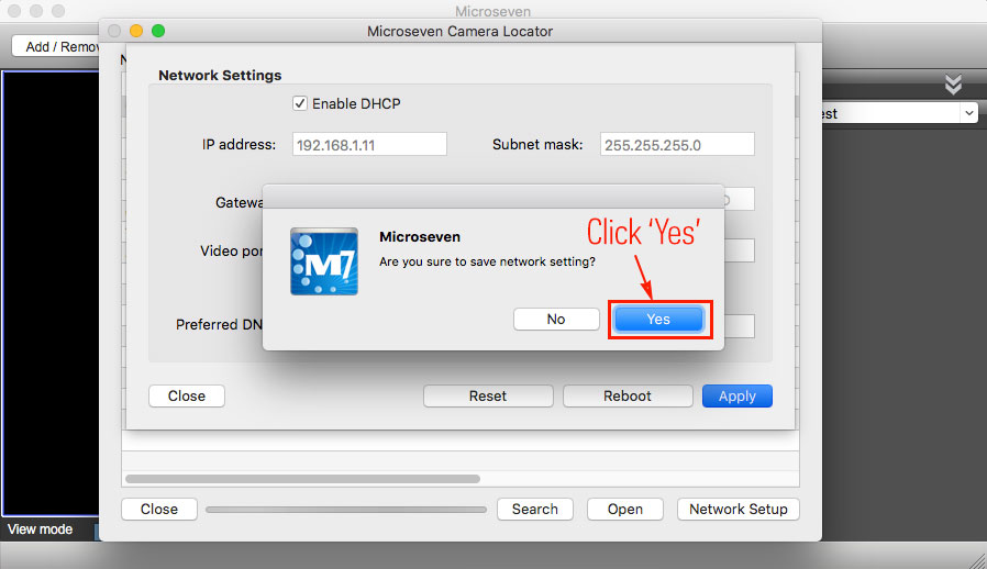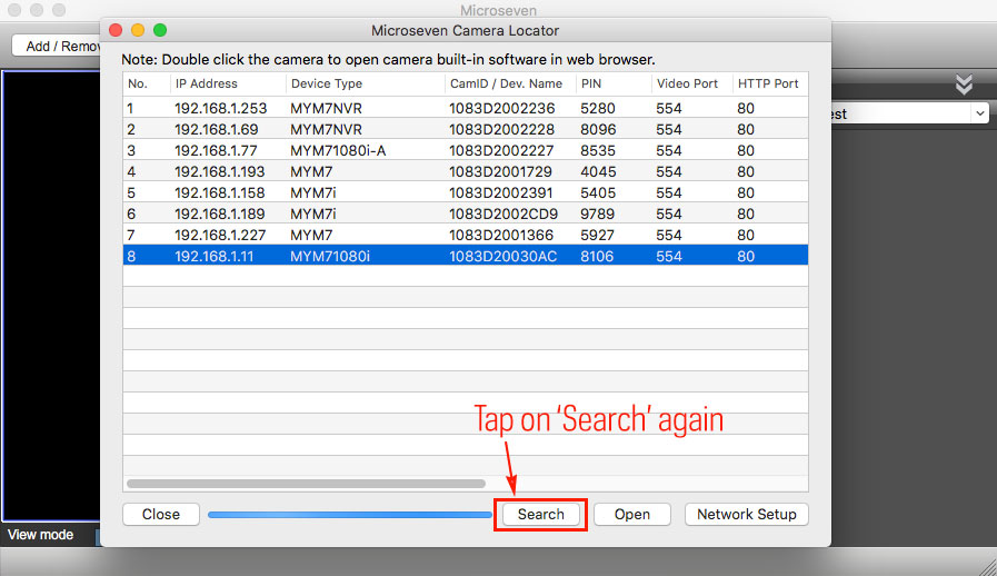 Step5 Click ‘Close’ button to close the Microseven Cam Locator window: